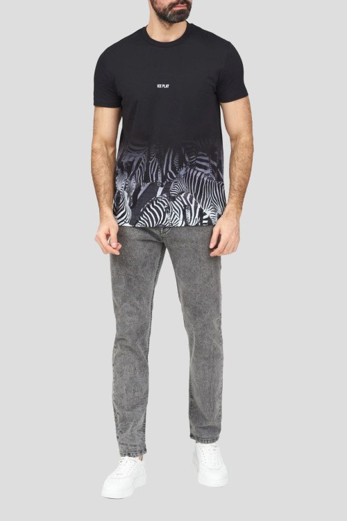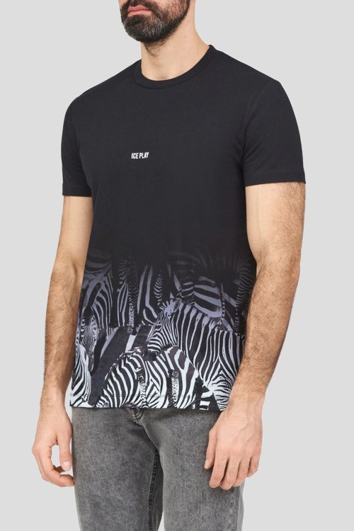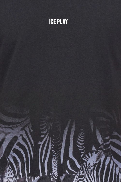 Детали: Мужская черная футболка из хлопка от Ice Play (Айс Плей). Круглый вырез горловины, короктие рукава, декорирована принтом, логотип бренда