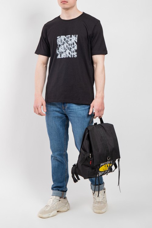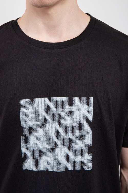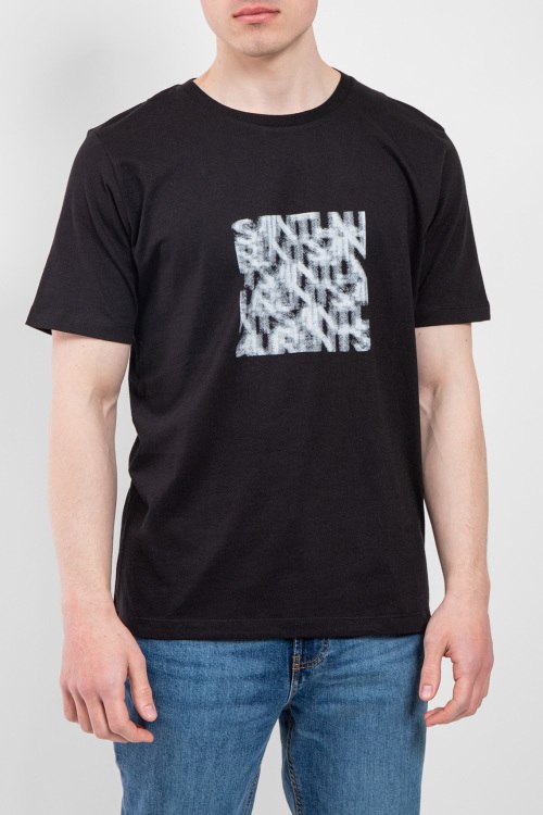 Мужская черная футболка из хлопка от Yves Saint Laurent (Сен Лоран). Классическая длина, круглый вырез горловины, короткие рукава, графический принт на груди.