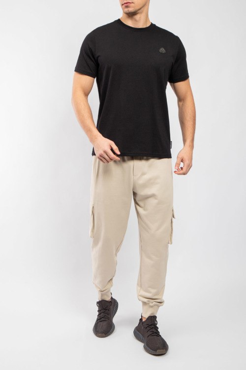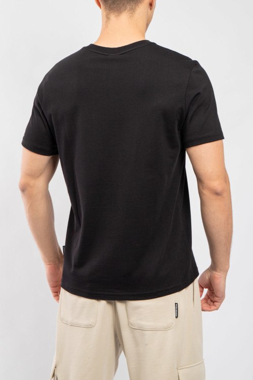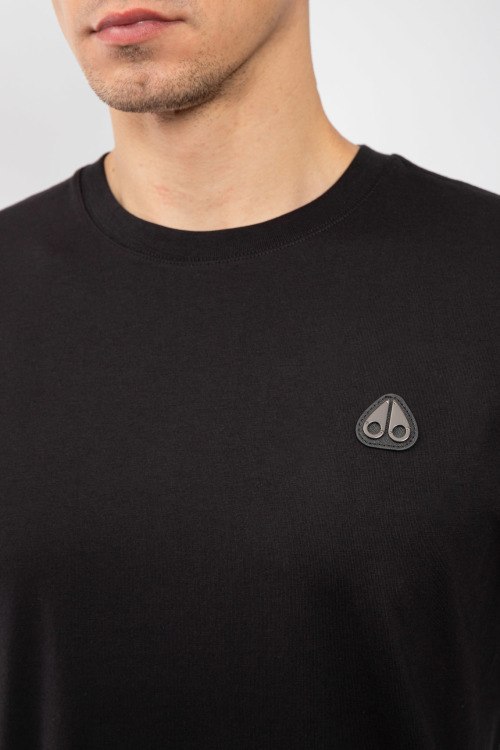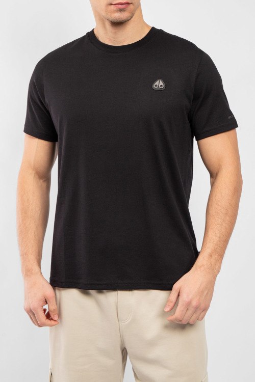 Детали: Мужская черная хлопковая футболка от Moose Knuckles (Мус Наклс). Логотип на груди, круглый вырез горловины, короткий рукав, классическая длина. Размер вещи на фото: L