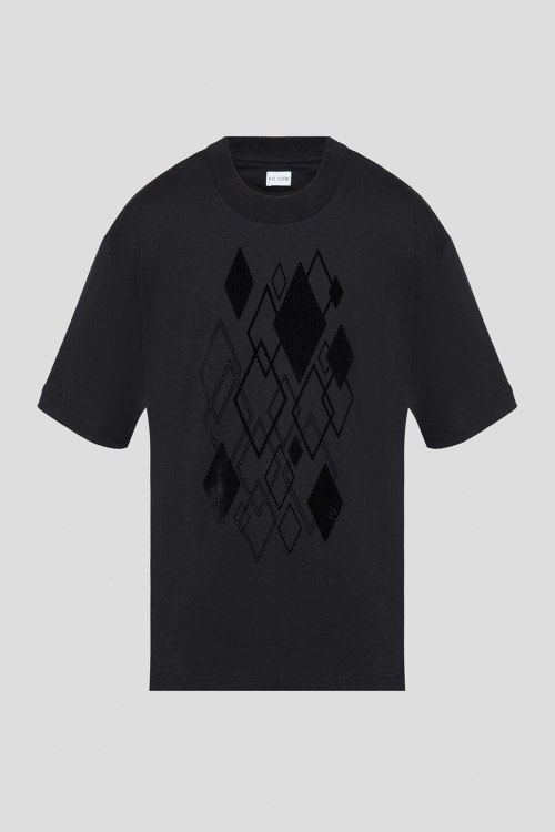 Детали: Мужская черная хлопковая футболка от Pal Zileri (Пал Зилери). Принт спереди, круглый вырез горловины, короткий рукав. Длина рукава: короткий, для размера 50 - 24 см, обхват груди: для размера 50 - 113 см, обхват талии: для размера 50 - 112 см, длина изделия по среднему шву спинки от горловины: для размера 50 - 70 см