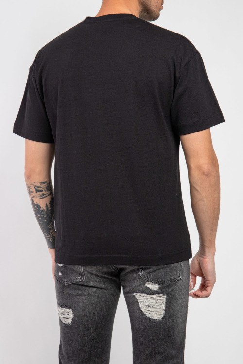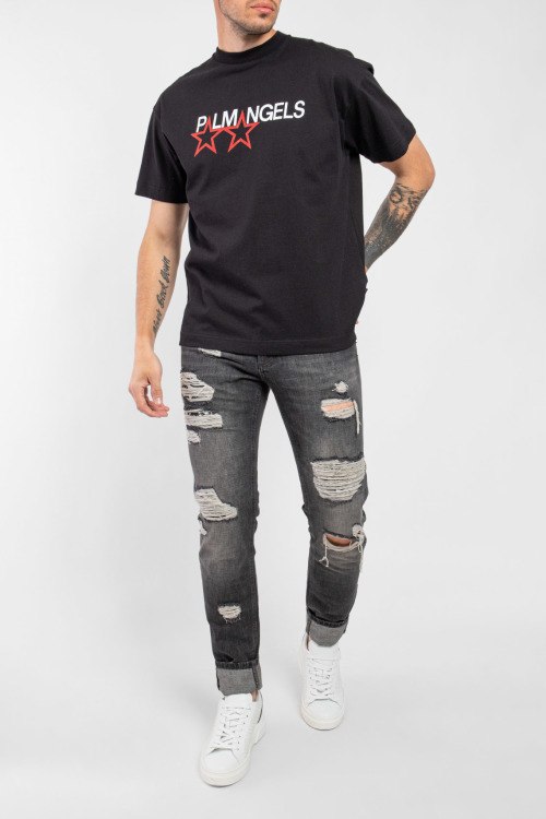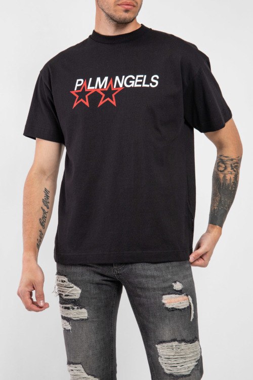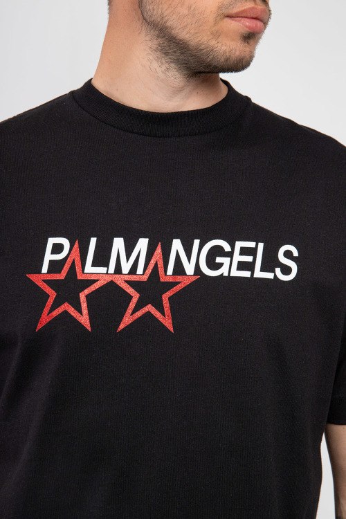 Мужская черная хлопковая футболка от Palm Angels (Палм Энджелс). Принт с логотипом на груди, круглый вырез горловины, короткий рукав, классическая длина.