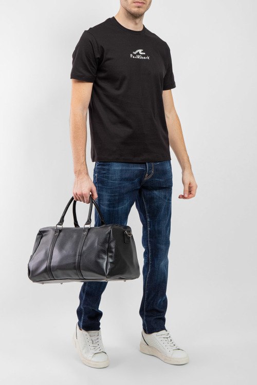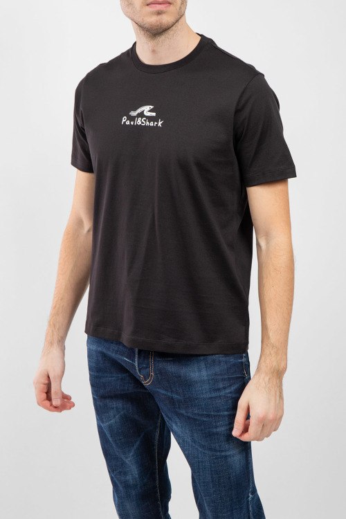 Мужская черная футболка из хлопка от Paul & Shark (Пол энд Шарк). Классическая длина, круглый вырез горловины, короткие рукава, логотип бренда на груди.