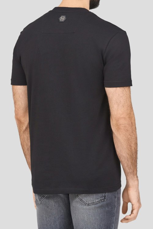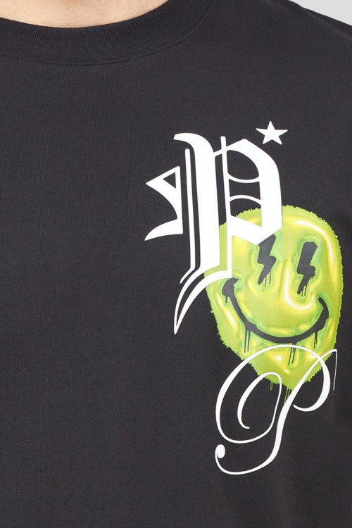 Детали: Мужская черная хлопковая футболка Smile от Philipp Plein (Филипп Плейн). Принт с логотипом на груди, круглый вырез горловины, короткий рукав, классическая длина