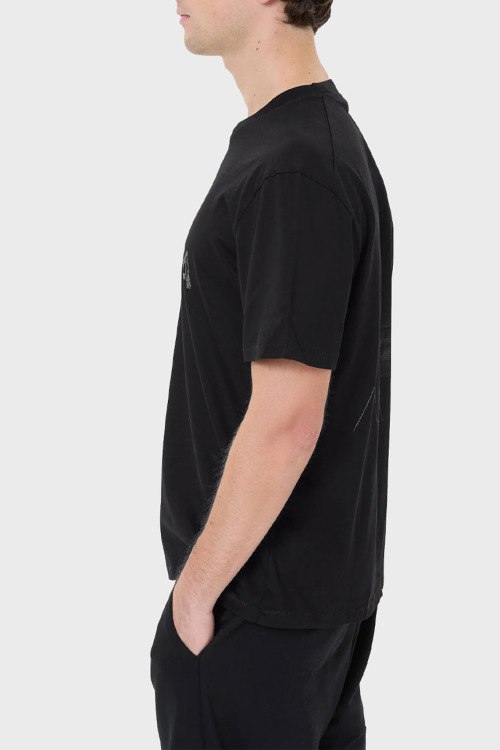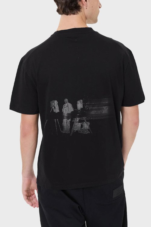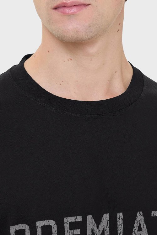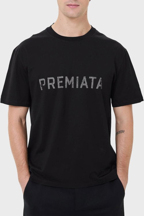 Детали: Мужская черная хлопковая футболка от Premiata (Премиата). Логотип на груди, принт на спине, круглый вырез горловины, короткий рукав, классическая длина
