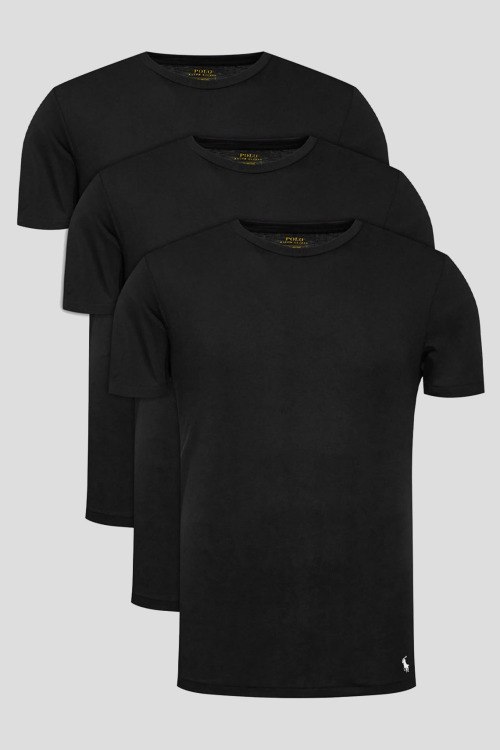 Детали: Мужской комплект базовых хлопковых черных футболок от Ralph Lauren (Ральф Лорен). Вышитый логотип, круглый вырез горловины, короткий рукав, классическая длина