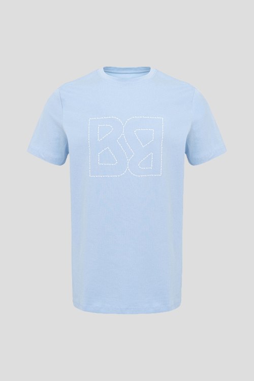 Детали: Мужская голубая хлопковая футболка Roc от Bogner (Богнер). Логотип на груди, круглый вырез горловины, короткий рукав, классическая длина