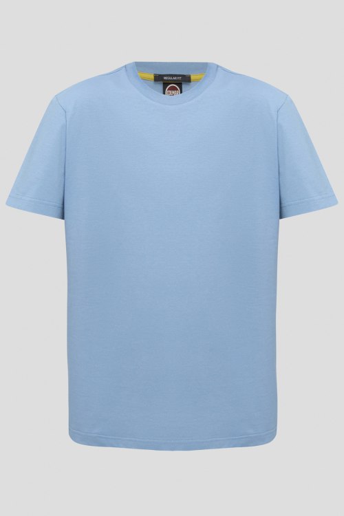 Детали: Мужская голубая футболка из хлопка от Colmar (Колмар). Классическая длина, круглый вырез горловины, короткие рукава, патч-лого. Замеры: длина рукава: короткий, для размера M - 21 см, обхват груди: для размера M - 106 см, обхват талии: для размера M - 102 см, длина изделия по среднему шву спинки от горловины: для размера M - 67 см