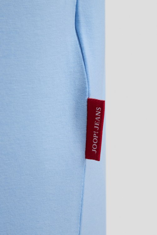 Детали: Мужская голубая футболка из хлопка от Joop! (Йооп!). Прямой фасон, круглый вырез горловины, эластичная резинка на манжетах. Замеры: длина рукава: короткий, для размера М - 22 см, обхват груди: для размера М - 102 см, обхват талии: для размера М - 100 см, длина изделия по среднему шву спинки от горловины: для размера М - 68 см