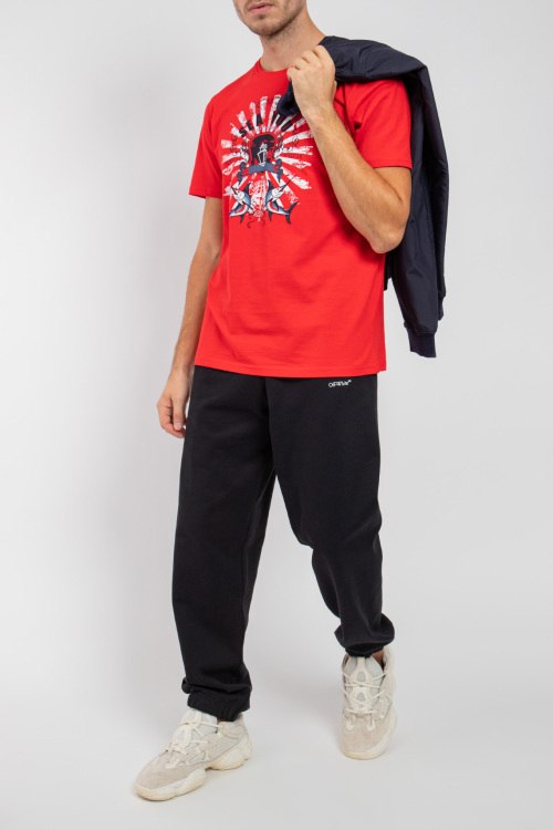 Мужская красная хлопковая футболка Sealife от Marvelis (Марвелис). Принт на груди, круглый вырез горловины, короткий рукав, классическая длина. Замеры для размера L: длина 73 см, полу обхват груди 55 см, длина рукава 25 см.
