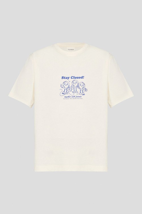 Детали: Мужская футболка молочного оттенка из хлопка от Closed (Клоузед). Прямой фасон, классическая длина, короткие рукава, круглый вырез горловины, принт спереди. Замеры: длина рукава: короткий, для размера М - 25 см, обхват груди: для размера М - 114 см, обхват талии: для размера М - 112 см, длина изделия по среднему шву спинки от горловины: для размера М - 69 см