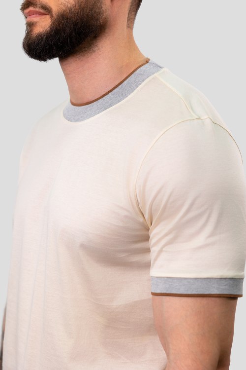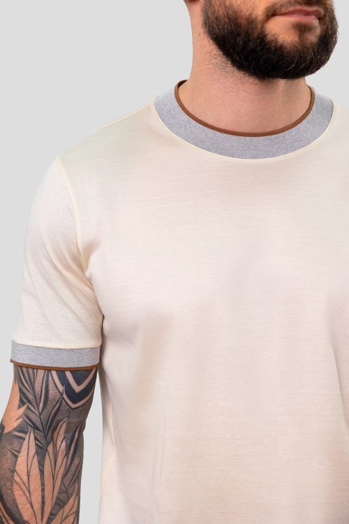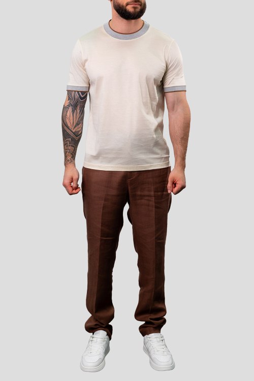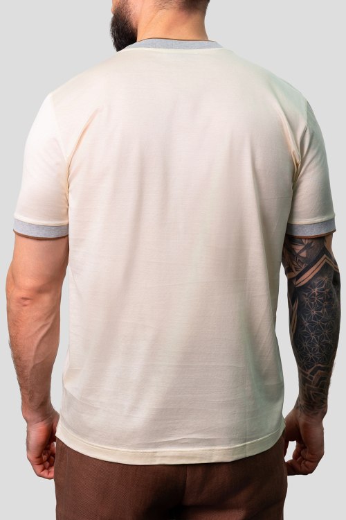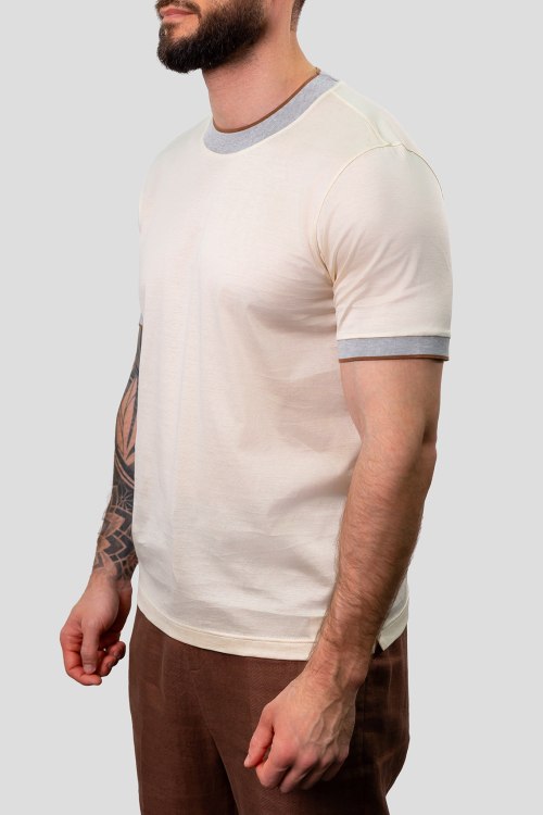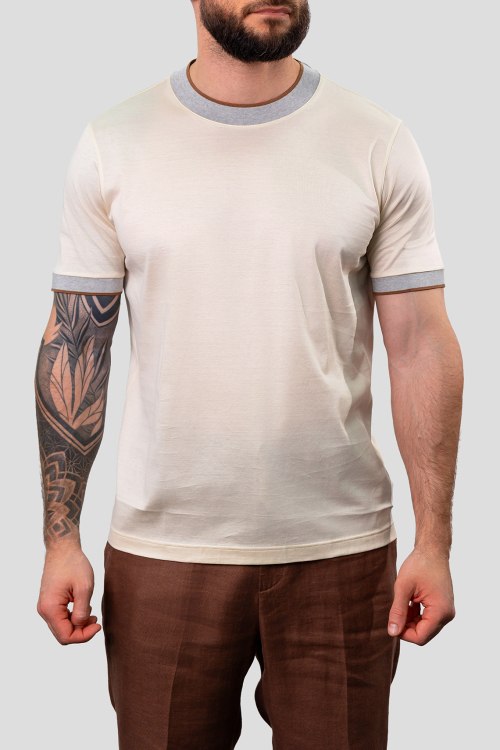 Детали: Мужская хлопковая футболка молочного оттенка от Gran Sasso (Гран Сассо). Круглый вырез горловины, короткий рукав, классическая длина