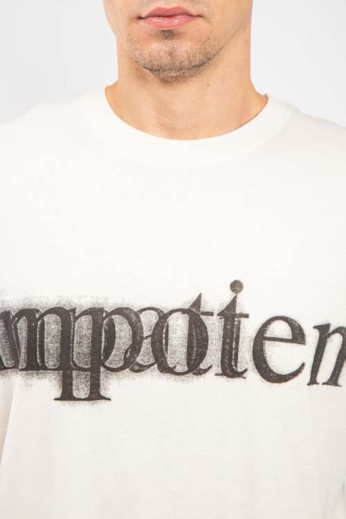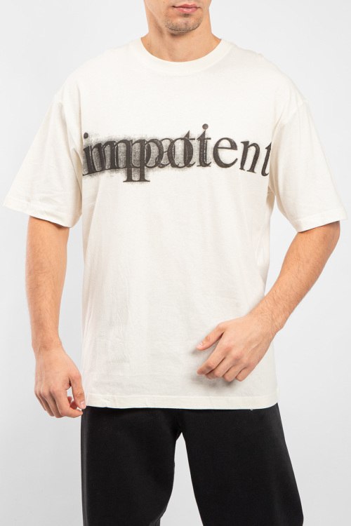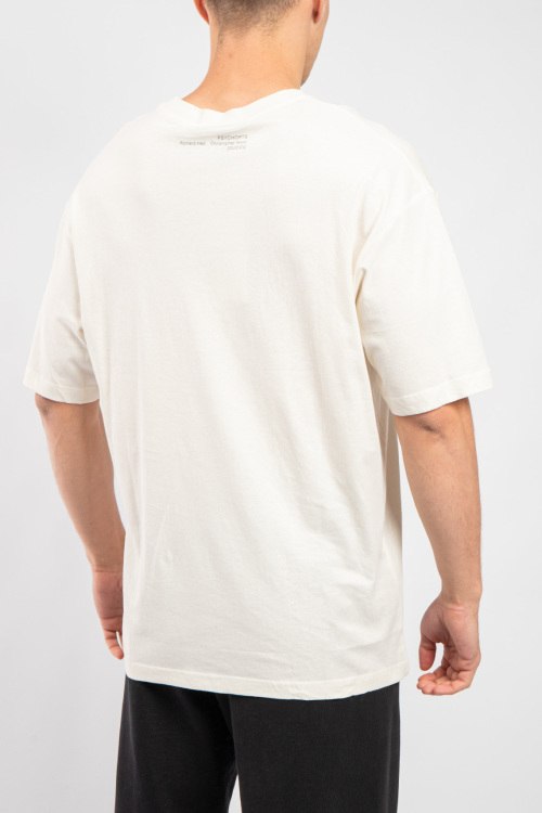 Мужская хлопковая футболка молочного оттенка от Gucci (Гуччи). Принт на груди, круглый вырез горловины, короткий рукав, классическая длина.