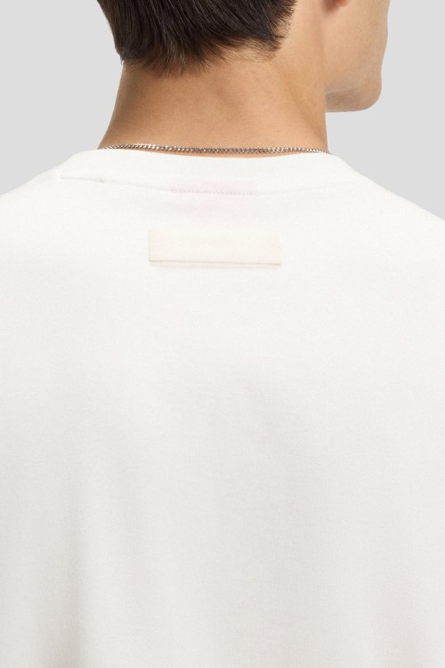 Детали: Мужская хлопковая футболка молочного оттенка Dimerstee от Hugo by Hugo Boss (Хуго бай Хуго Босс). Логотип на спине, круглый вырез горловины, короткий рукав, классическая длина