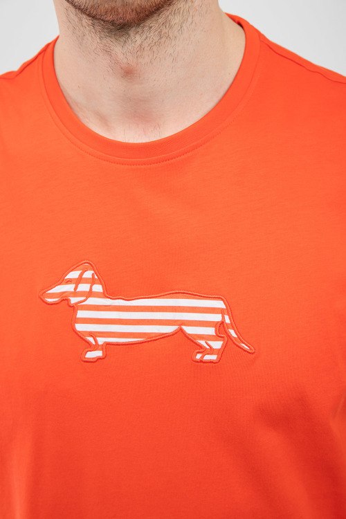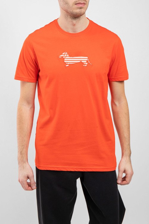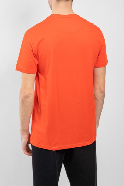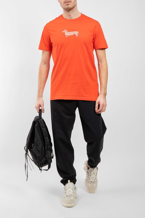 Мужская оранжевая хлопковая футболка от Harmont & Blaine (Хармонт энд Блейн). Нашивка с логотипом на груди, круглый вырез горловины, короткий рукав, классическая длина.