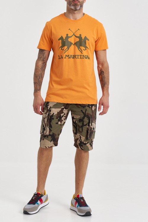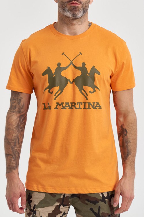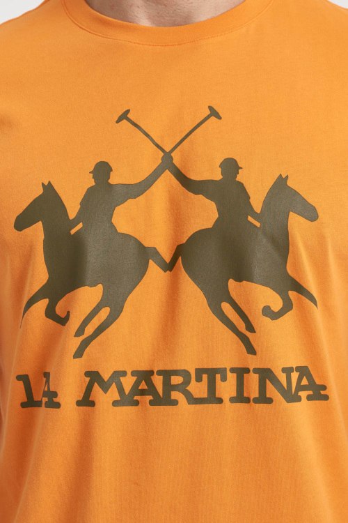 Детали: Мужская оранжевая хлопковая футболка от La Martina (Ла Мартина). Логотип на груди, круглый вырез горловины, короткий рукав, классическая длина. Параметры модели: 103 см - 87 см - 99 см. Рост - 182 см. Размер на фото - L