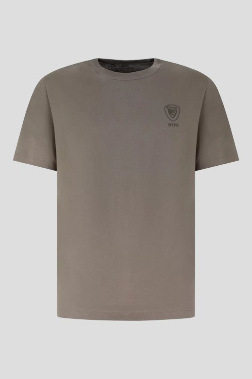 Детали: Мужская серая хлопковая футболка от Blauer (Блауэр). Принт на груди, круглый вырез горловины, короткий рукав, классическая длина