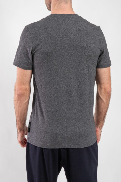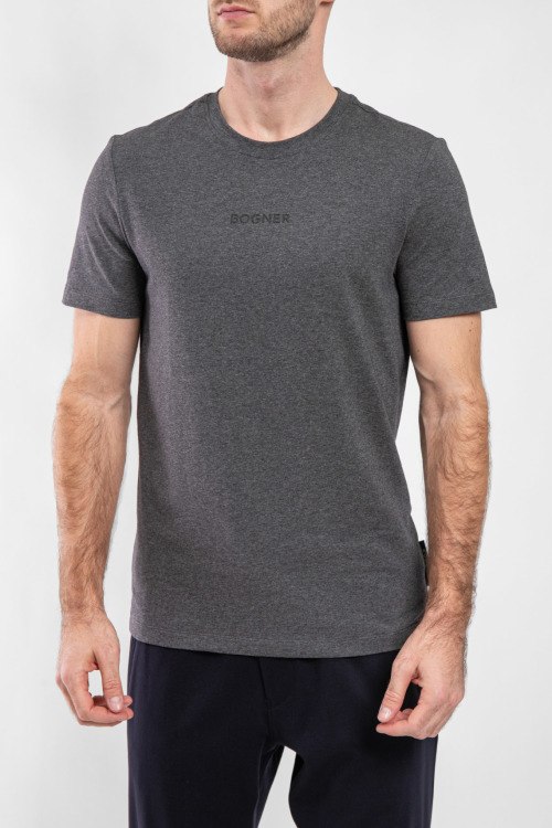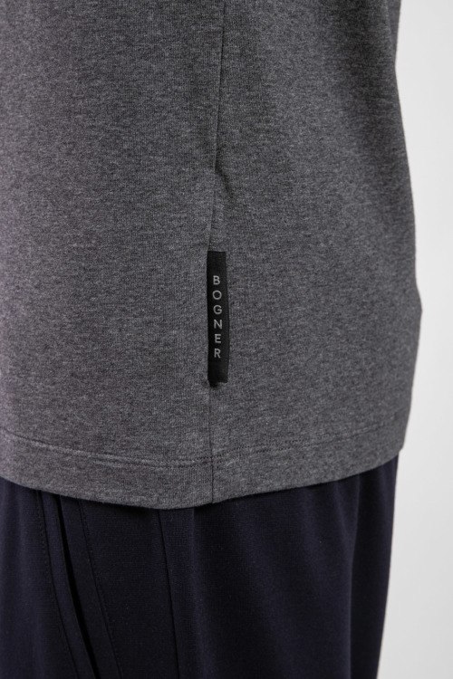 Мужская серая футболка Roc из хлопка от Bogner (Богнер). Классическая длина, круглый вырез горловины, короткие рукава, брендированный принт на груди.