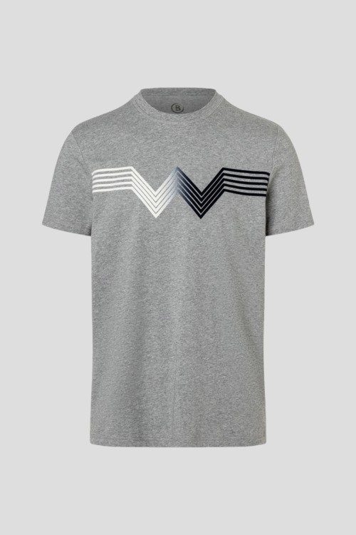 Детали: Мужская серая хлопковая футболка Roc от Bogner (Богнер). Принт с градиентом на груди, круглый вырез горловины, короткий рукав, классическая длина