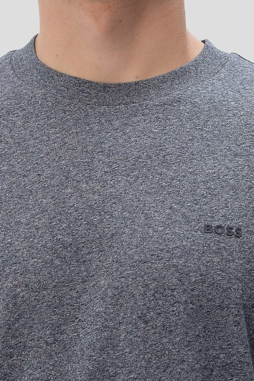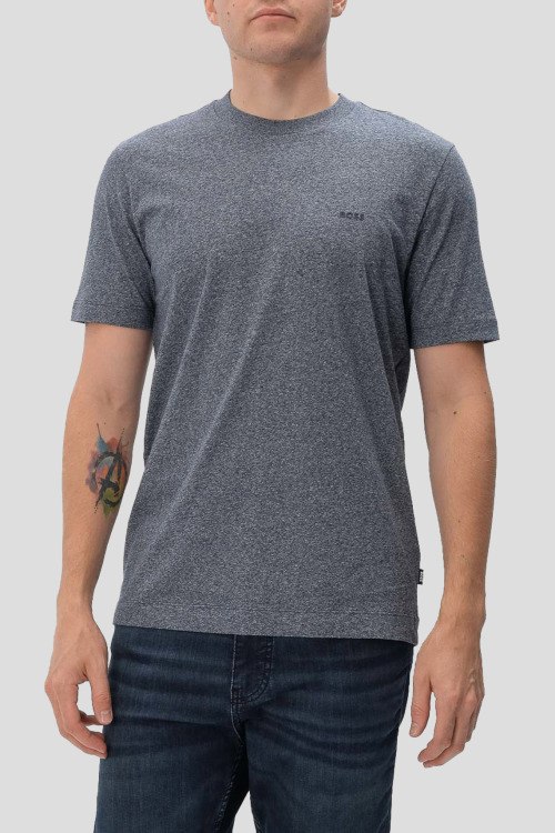 Детали: Мужская серая хлопковая футболка Thompson от Hugo Boss (Хуго Босс). Логотип на груди, круглый вырез горловины, короткий рукав, классическая длина