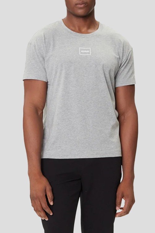 Детали: Мужская серая хлопковая футболка Laze от Hugo by Hugo Boss (Хуго бай Хуго Босс). Логотип на груди, круглый вырез горловины, короткий рукав, классическая длина