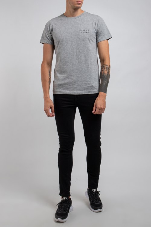 Мужская серая футболка из хлопка от Ko Samui (Ко Самуи). Классическая длина. короткие рукава, круглый вырез горловины, спереди принт Mao Zedong.