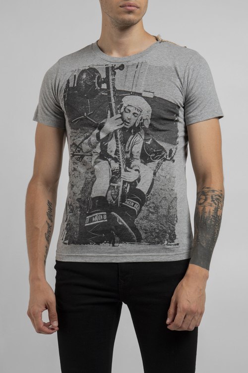Мужская серая футболка из хлопка от Ko Samui (Ко Самуи). Классическая длина, короткие рукава, курглый вырез горловины, спереди принт.