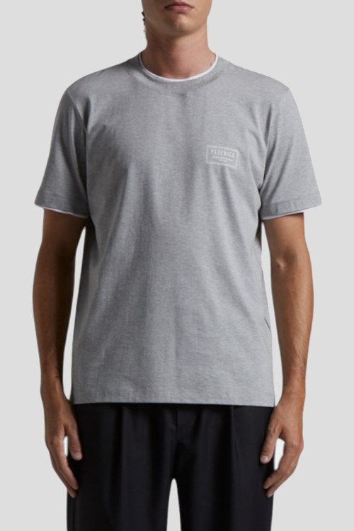 Детали: Мужская серая хлопковая футболка от Peserico (Пезерико). Логотип на груди, круглый вырез горловины, короткий рукав, классическая длина