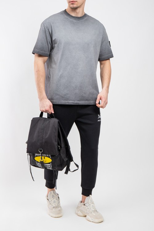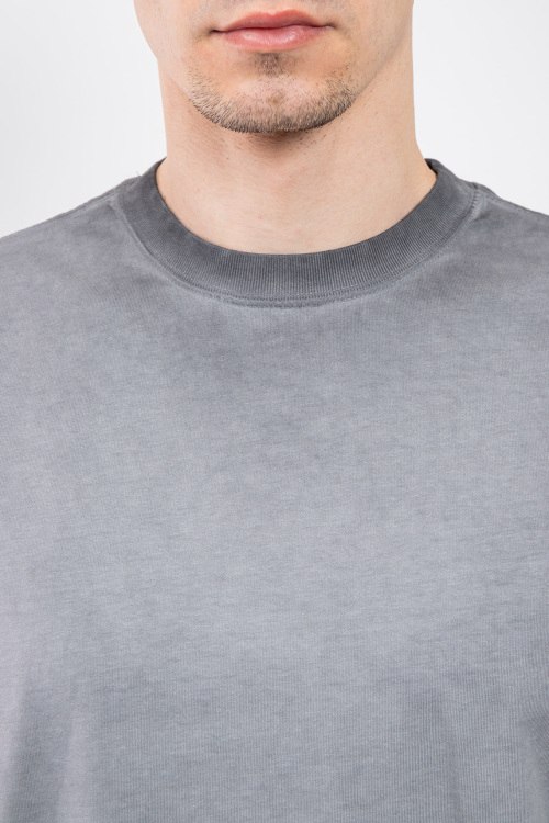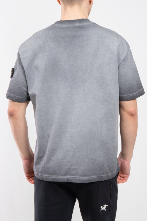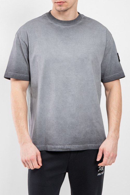 Мужская серая футболка из хлопка от Stone Island (Стоун Айленд). Классическая длина, круглый вырез горловины, короткие рукава, патч-лого на рукаве, дизайн с градиентом.