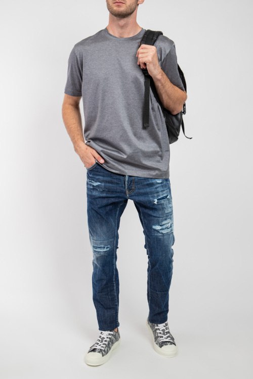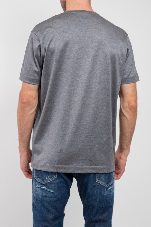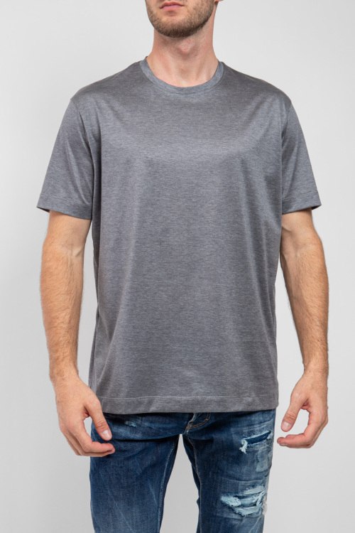 Мужская серая футболка из хлопка от Tombolini (Томболини). Классическая длина, круглый вырез горловины, короткие рукава, ровный низ изделия.