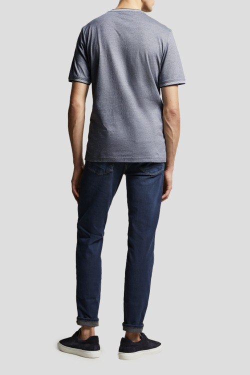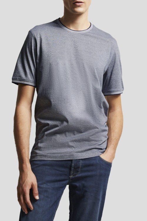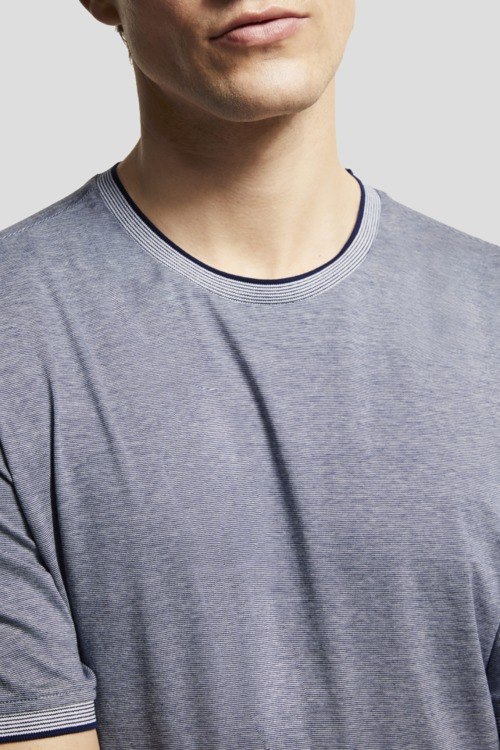 Детали: Мужская синяя футболка из хлопка от Bugatti (Бугатти). Классическая длина, круглый вырез горловины, короткие рукава, контрастная окантовка