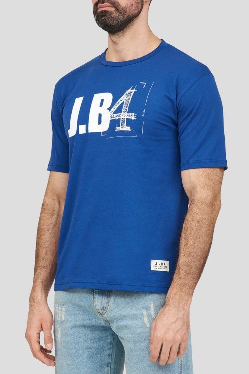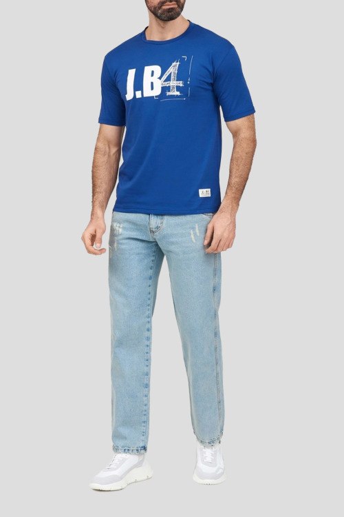 Детали: Мужская синяя хлопковая футболка от J.B4 Just Before (Джаст Бифо). Логотип на груди, круглый вырез горловины, короткий рукав, классическая длина