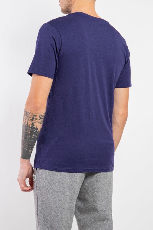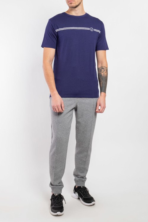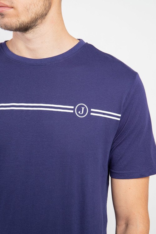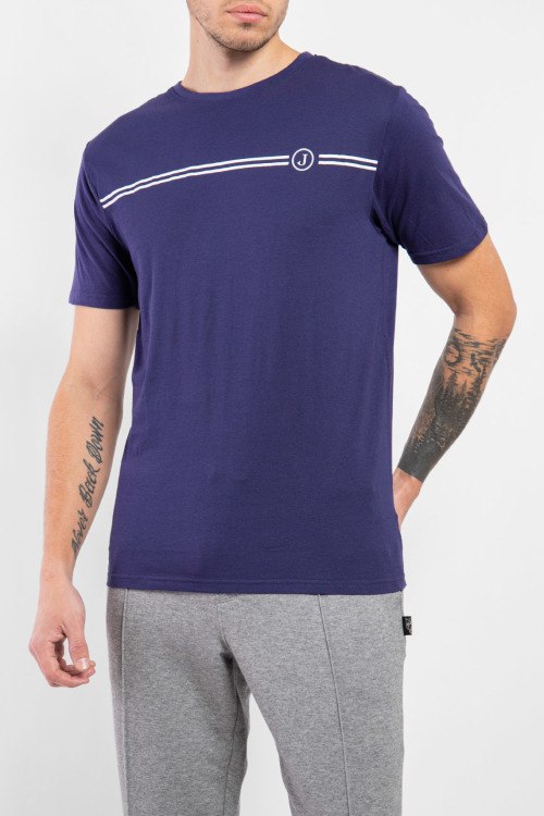 Мужская синяя хлопковая футболка от Jeckerson (Джекерсон). Контрастный принт на груди, кргулый вырез горловины, короткий рукав, классическая длина.