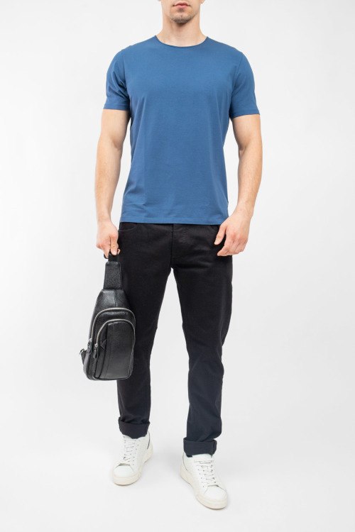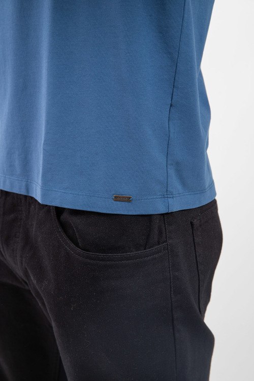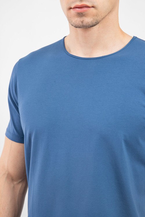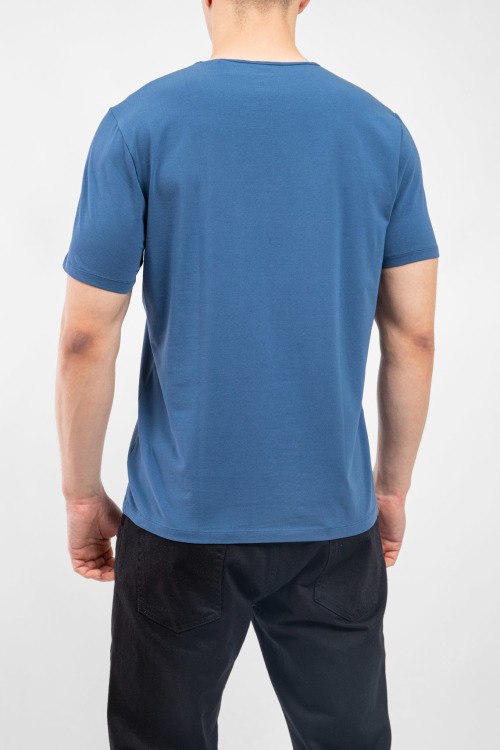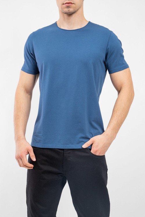 Мужская темно-синяя футболка из хлопка от Olymp (Олимп). Классическая длина, круглый вырез горловины, короткие рукава, ровный низ изделия.