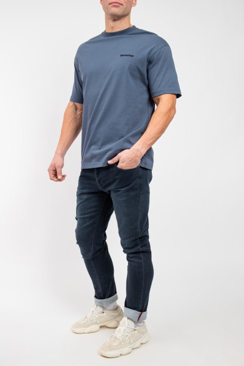 Мужская темно-серая хлопковая футболка от Balenciaga (Баленсиага). Вышитый логотип на груди, круглый вырез горловины, короткий рукав, классическая длина.