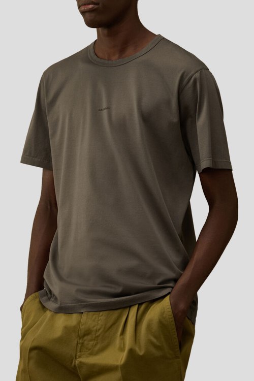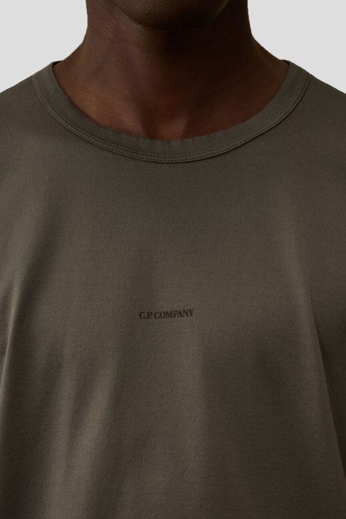 Детали: Мужская темно-серая хлопковая футболка от C.P. Company (СиПи Компани). Логотип на груди, круглый вырез горловины, короткий рукав, классическая длина