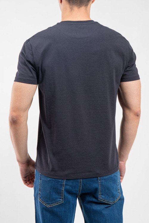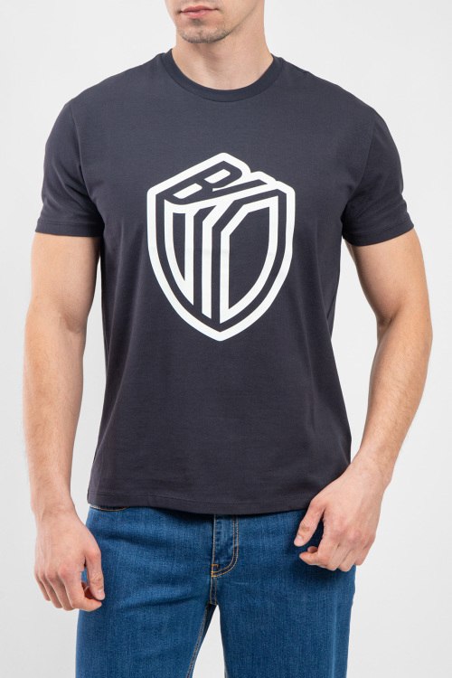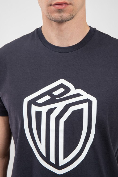 Мужская темно-серая футболка из хлопкового микса от Bikkembergs (Биккембергс). Классическая длина, круглый вырез горловины, короткие рукава, брендированный принт на груди.