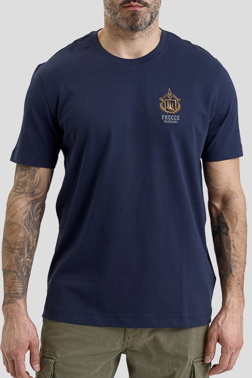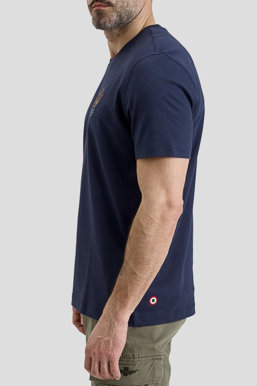 Детали: Мужская темно-синяя хлопковая футболка от Aeronautica Militare (Аэронавтика Милитари). Вышивка на груди, круглый вырез горловины, короткий рукав, классическая длина