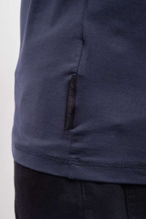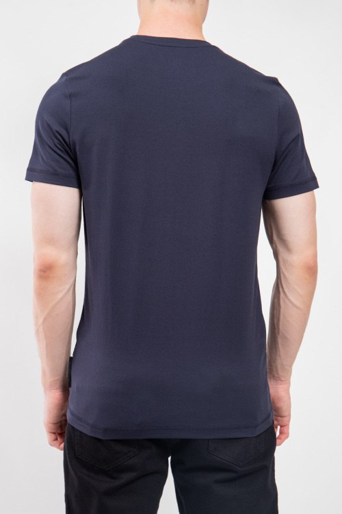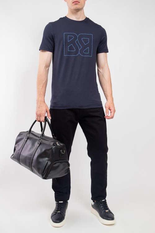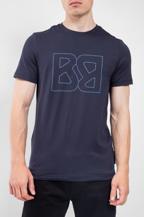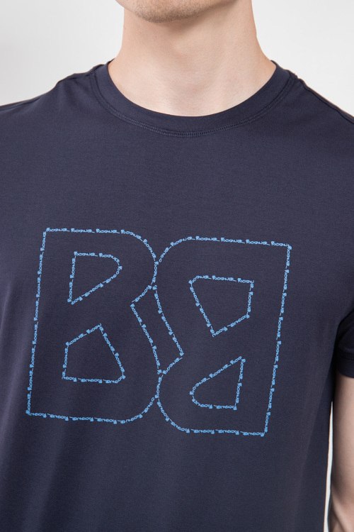 Детали: Мужская темно-синяя хлопковая футболка Roc от Bogner (Богнер). Принт с логотипом на груди, круглый вырез горловины, короткий рукав, классическая длина