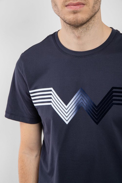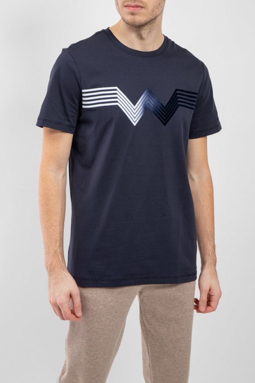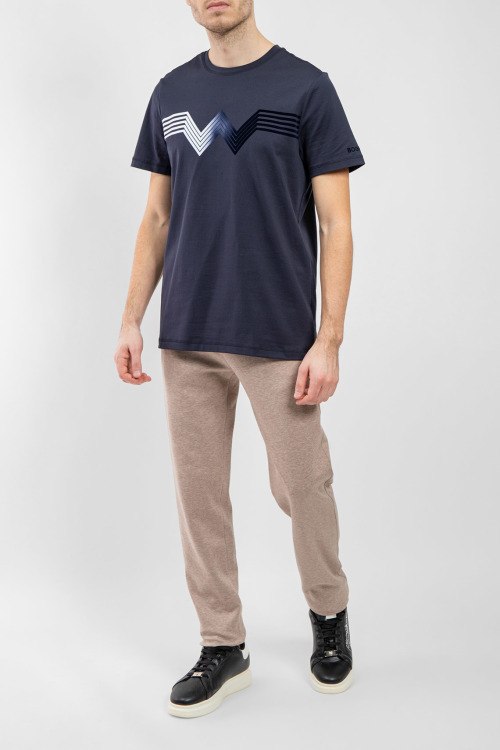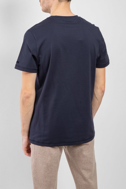 Мужская темно-синяя футболка Roc из хлопкового микса от Bogner (Богнер). Классическая длина, круглый вырез горловины, короткие рукава, декорирована принтом на груди.