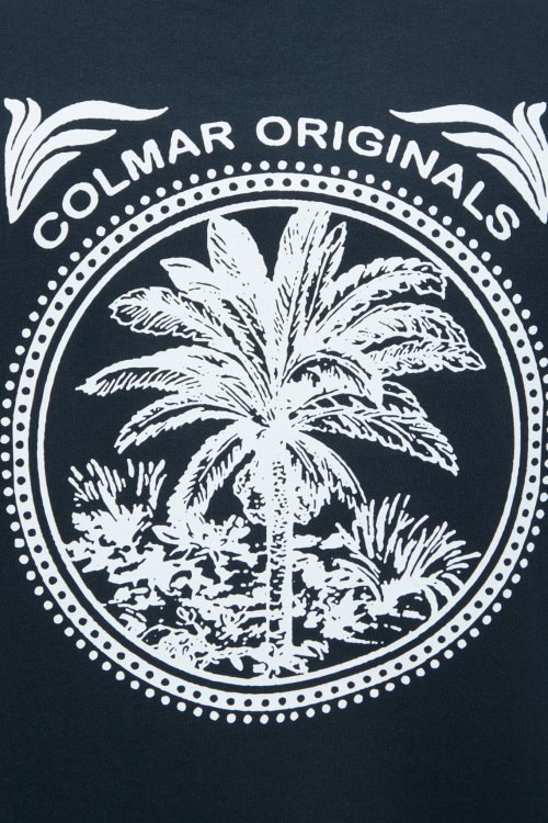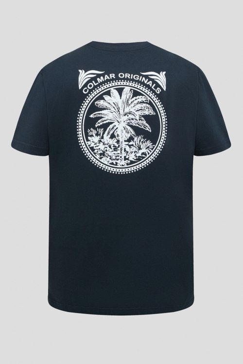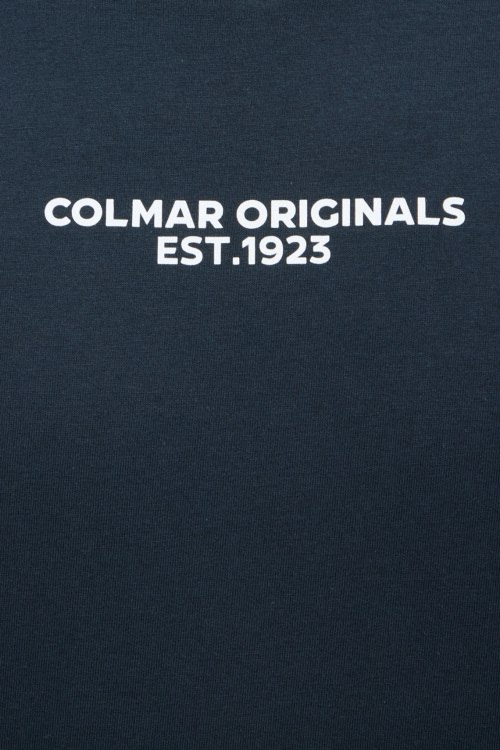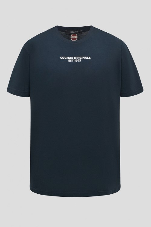 Детали: Мужская темно-синяя футболка из хлопка от Colmar (Колмар). Классическая длина, круглый вырез горловины, короткие рукава, модель декорирована принтом. Замеры: длина рукава: короткий, для размера M - 21,5 см, обхват груди: для размера M - 106 см, обхват талии: для размера M - 102 см, длина изделия по среднему шву спинки от горловины: для размера M - 65 см
