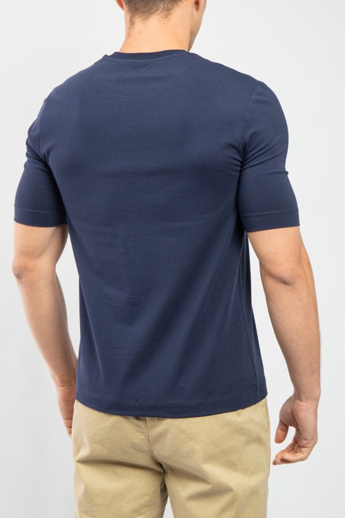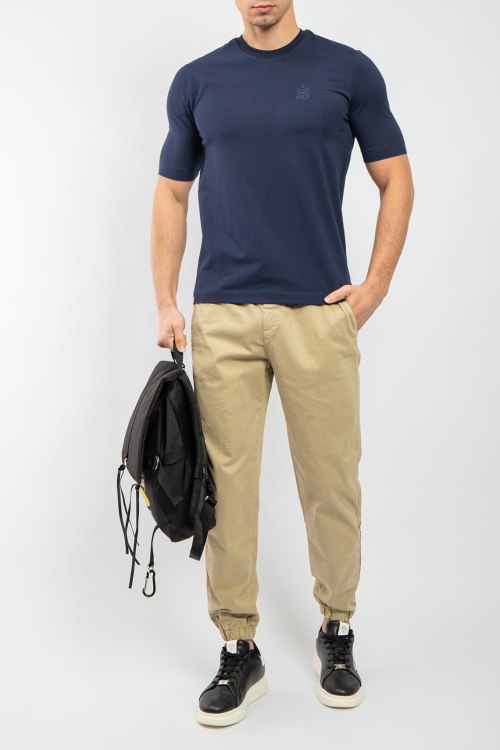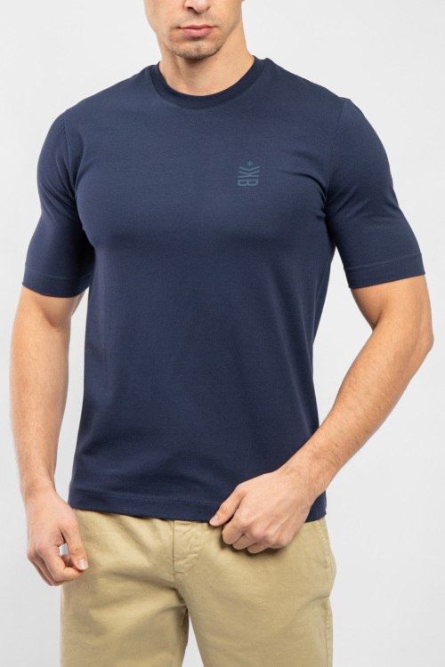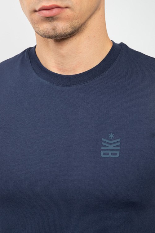 Мужская темно-синяя хлопковая футболка от Bikkembergs (Биккембергс). Логотип на груди, круглый вырез горловины, короткий рукав, классическая длина.