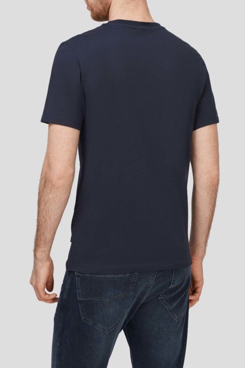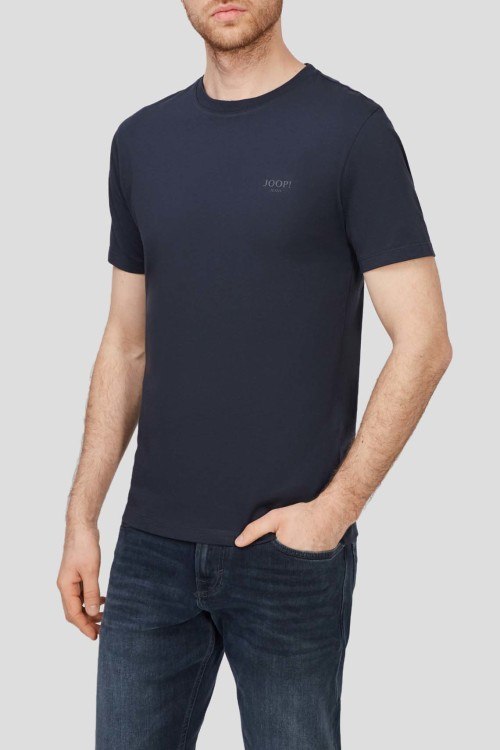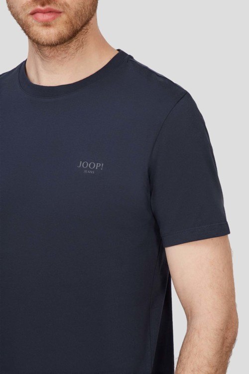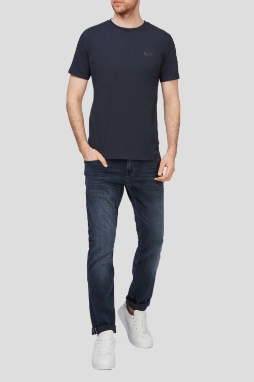 Детали: Мужская темно-синяя футболка из хлопка от Joop! (Йоп). Классическая длина, короткие рукава, круглый вырез горловины, ровный низ изделия, фирменный логотип бренда. Размер на модели: М. Рост модели: 190 см. Замеры: длина рукава: короткий, 22,5 см, обхват груди: 102 см, обхват талии: 96 см, длина изделия по среднему шву спинки от горловины: 67,5 см