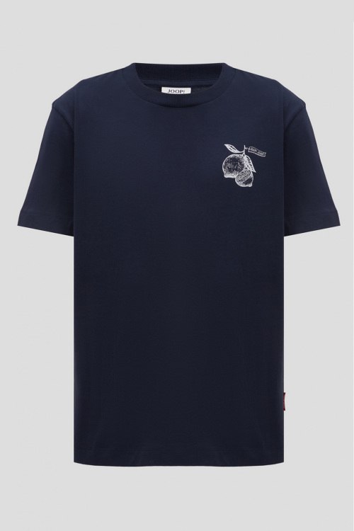 Детали: Мужская темно-синяя хлопковая футболка от Joop! (Йооп!). Принт на груди, круглый вырез горловины, короткий рукав, классическая длина. Длина рукава: короткий, для размера М - 21 см, обхват груди: для размера М - 114 см, обхват талии: для размера М - 112 см, длина изделия по среднему шву спинки от горловины: для размера М - 65 см