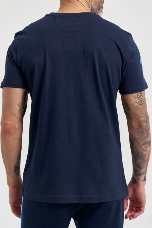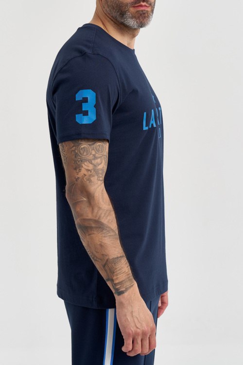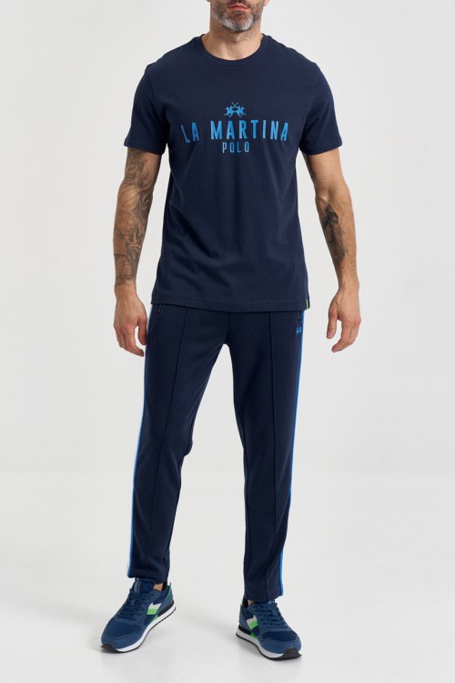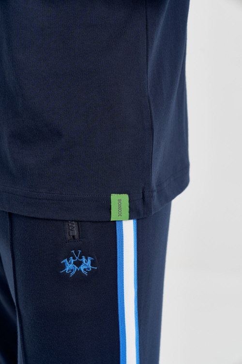 Детали: Мужская темно-синяя хлопковая футболка от La Martina (Ла Мартина). Логотип на груди, круглый вырез горловины, короткий рукав, классическая длина. Параметры модели: 103 см - 87 см - 99 см. Рост - 182 см. Размер на фото - L