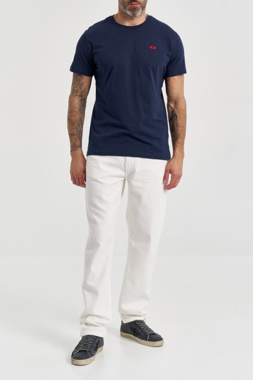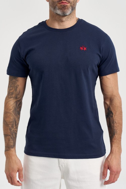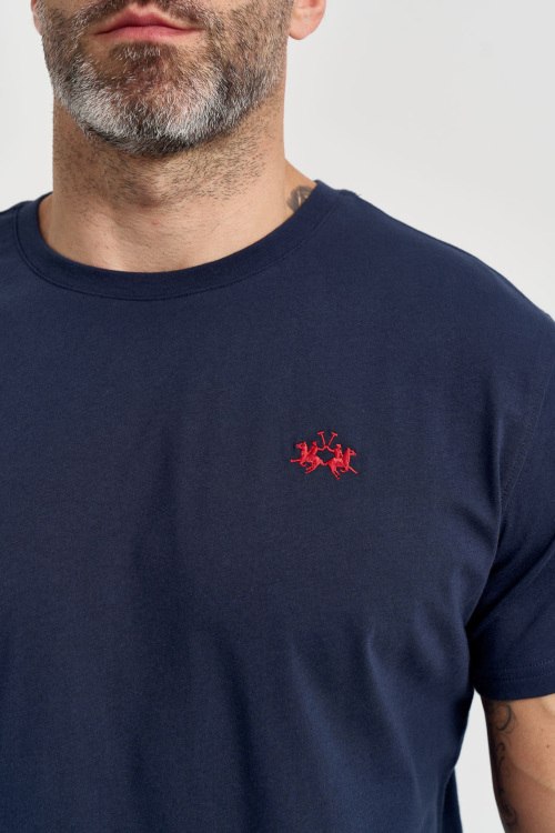 Детали: Мужская темно-синяя хлопковая футболка от La Martina (Ла Мартина). Логотип на груди, круглый вырез горловины, короткий рукав, классическая длина. Параметры модели: 103 см - 87 см - 99 см. Рост - 182 см. Размер на фото - L