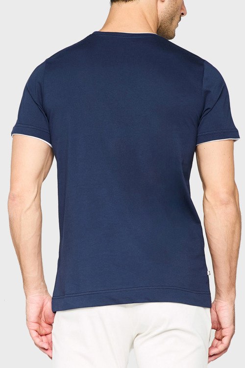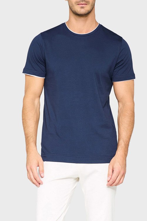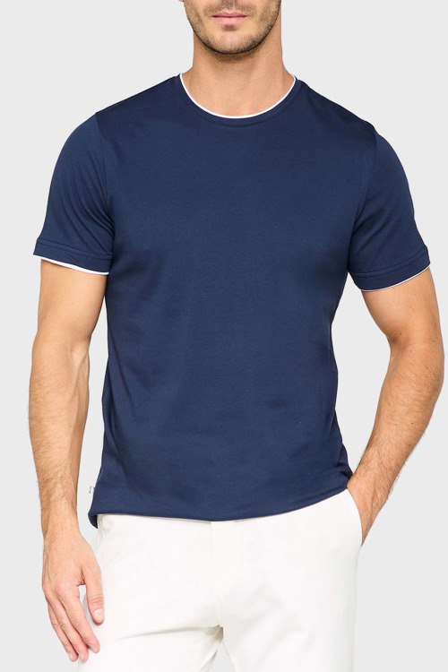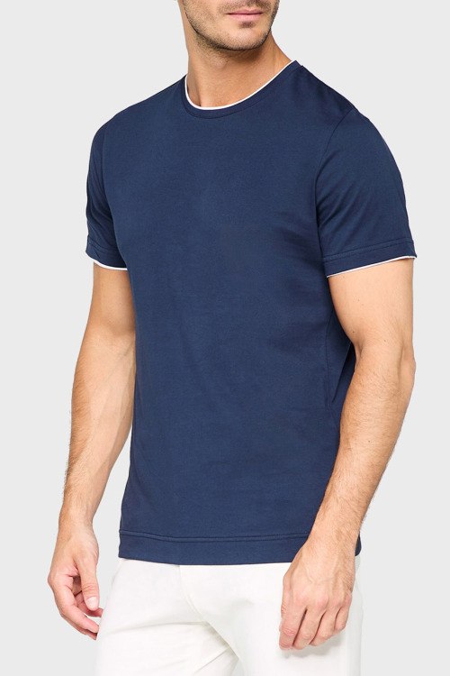 Детали: Мужская темно-синяя футболка из хлопка от Paul Taylor (Пол Тейлор). Классическая длина, круглый вырез горловины, короткие рукава, контрастная окантовка