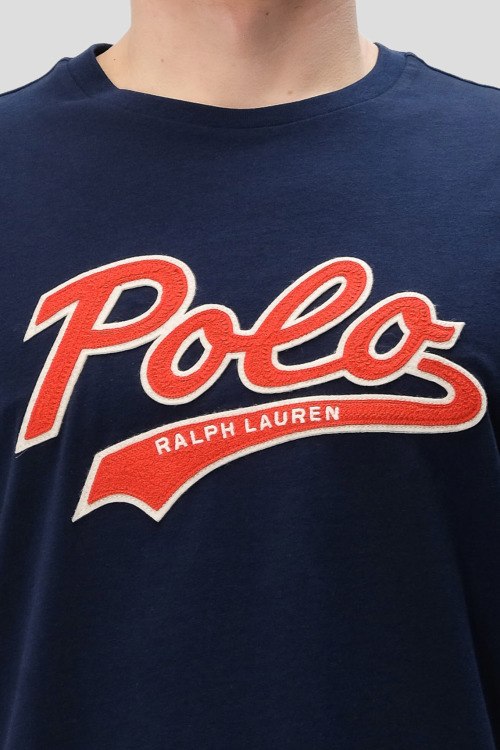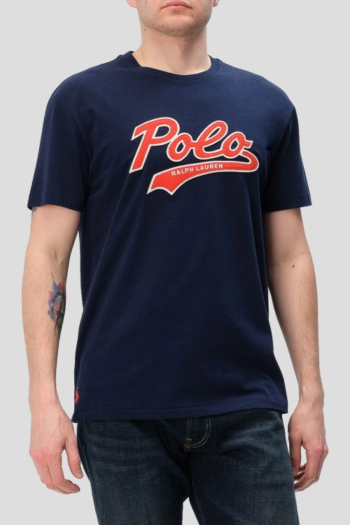 Детали: Мужская темно-синяя хлопковая футболка от Polo Ralph Lauren (Поло Ральф Лорен). Логотип на груди, круглый вырез горловины, короткий рукав, классическая длина