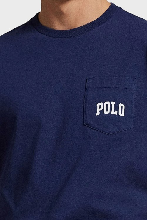 Детали: Мужская темно-синяя футболка из хлопка от Polo Ralph Lauren (Поло Ральф Лорен). Классическая длина, круглый вырез горловины, короткие рукава, нагрудный карман, графический принт на груди