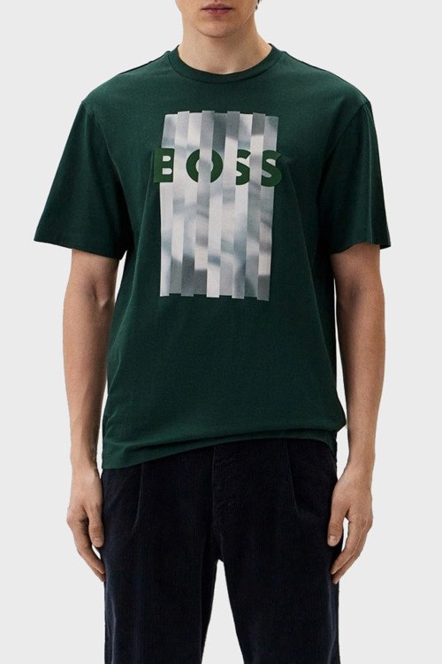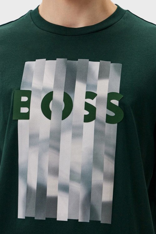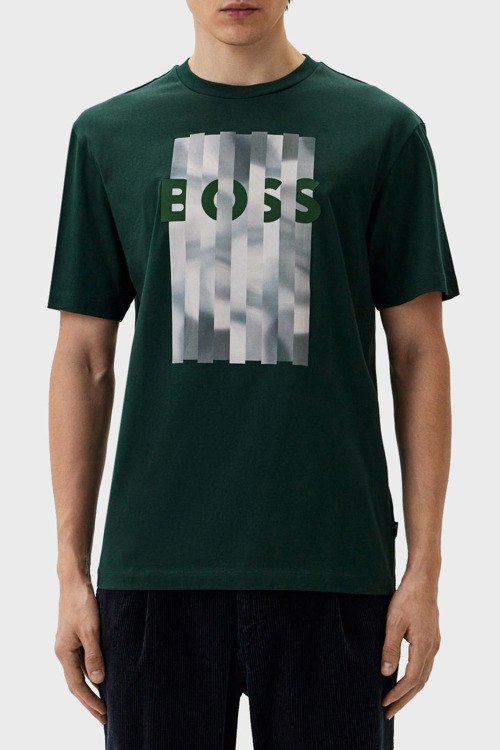 Детали: Мужская зеленая футболка C-Tessin из хлопка от Hugo Boss (Хуго Босс). Круглый вырез горловины, короткие рукава, брендированный принт