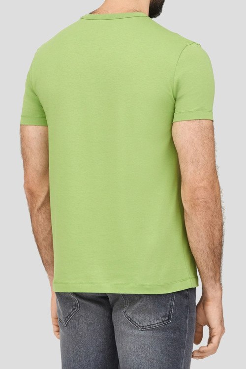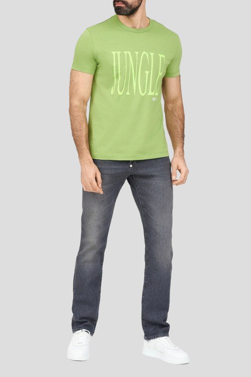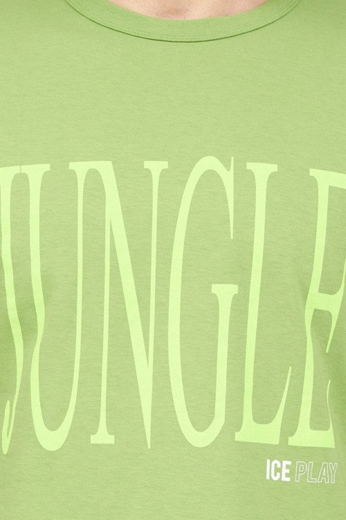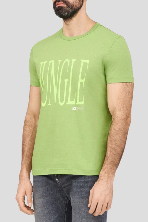 Детали: Мужская зеленая футболка из хлопка от Ice Play (Айс Плей). Классическая длина, круглый вырез горловины, короткие рукава, декорирована принтом
